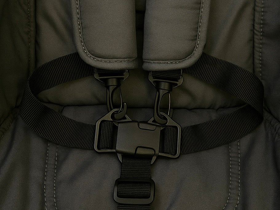La poussette assure une sécurité optimale grâce à son harnais 5 points, son système de freinage fiable et son canopy protecteur tout en restant facile à manœuvrer grâce à ses roues robustes et maniables.